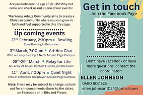February 4th 2026If you are a young person in years 6 - 10 at school we would love you to come along. When: Friday nights, 7pm - 9pm (6th February - 27th March) Where: Most nights are at Mosaic Page (18 DallachyRead moreMosaic-wide Combined Services for 2026