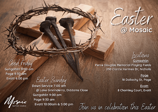 To call Mosaic Baptist ph: 02 6254 65656